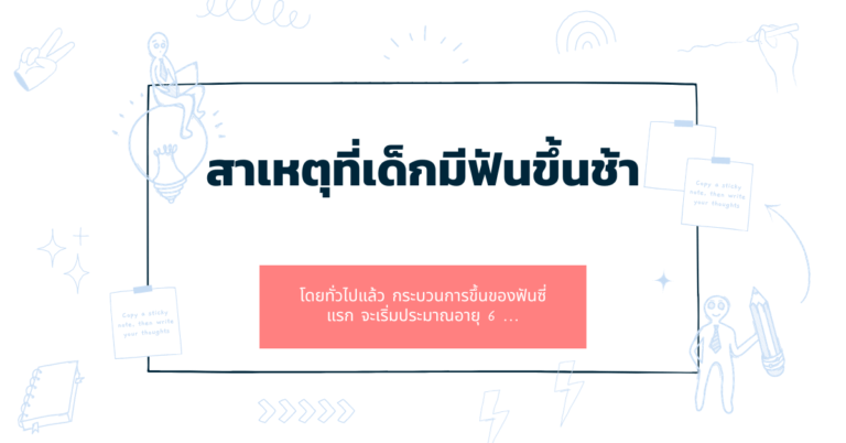 โดยทั่วไปแล้ว กระบวนการขึ้นของฟันซี่แรก จะเริ่มประมาณอายุ 6 เดือน และเมื่ออายุ 3 ขวบ ฟันน้ำนมก็จะขึ้นครบ แต่อาจะมีหลายปัจจัยที่ส่งผลต่อการขึ้นช้า เช่น กรรมพันธุ์ การขาดสารอาหาร สุขภาพช่องปากที่ไม่ดี การดูดนิ้วหัวแม่มือหรือจุกนมยาง โรคประจำตัว