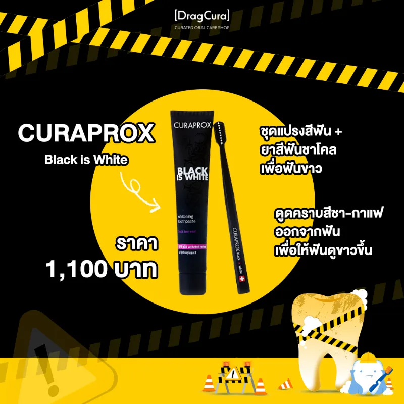 คอกาแฟ และนักดื่มชาถูกใจสิ่งนี้! DragCura จึงขอแนะนำยาสีฟัน Black Is White ที่มีส่วนผสมของ ชาโคล มีคุณสมบัติช่วยดูดคราบสีจากชาและกาแฟ โดยไม่เป็นอันตรายต่อผิวฟันอย่างแน่นอน