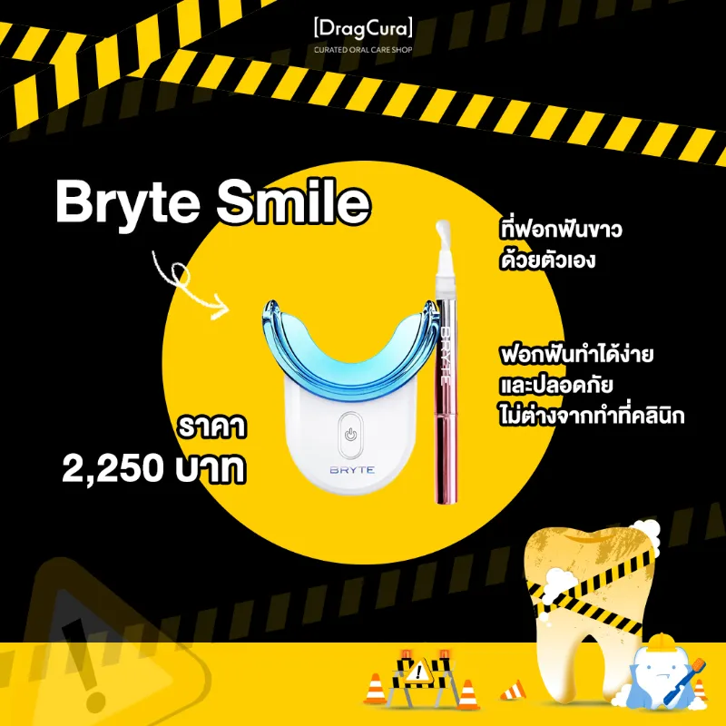 “ฟอกฟันขาว” หนึ่งในวิธีที่หลาย ๆ คนเลือก เพื่อการทำให้ฟันขาวยิ่งขึ้น เพื่อเพิ่มความมั่นใจ งานนี้ DragCura จึงคัดสรร BRYTE SMILE แบรนด์ที่ฟอกฟันขาว ที่คิดค้นเครื่องและเจล ที่ห้องแลปในสหรัฐอเมริกาโดยทันตแพทย์ และได้รับรองมาตรฐาน USFDA (U.S. Food and Drug Administration)